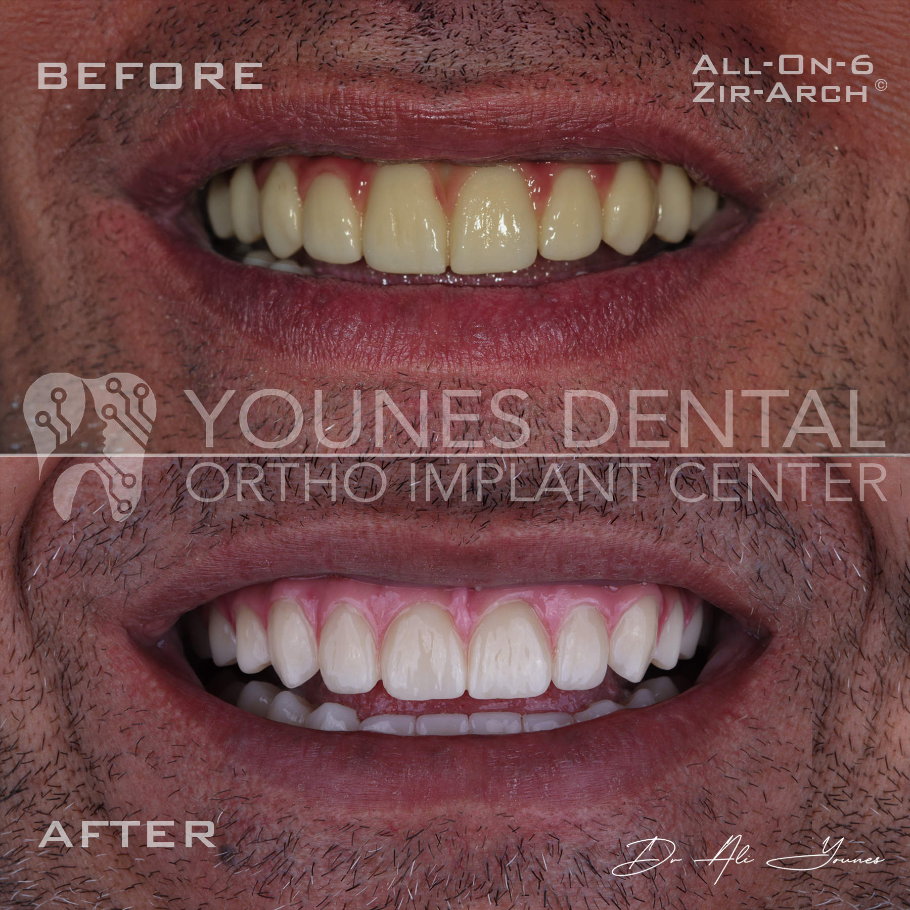 Our All-on-6 treatment offers a permanent and stable solution for patients seeking full-arch restoration. By placing six precisely positioned implants, we are able to secure a complete set of natural-looking teeth that feel comfortable and function just like real teeth. This advanced, minimally invasive technique ensures long-lasting results, restoring both the aesthetics and function of your smile. At Younes Dental Clinic, we take pride in delivering life-changing outcomes, helping you regain confidence and quality of life.
