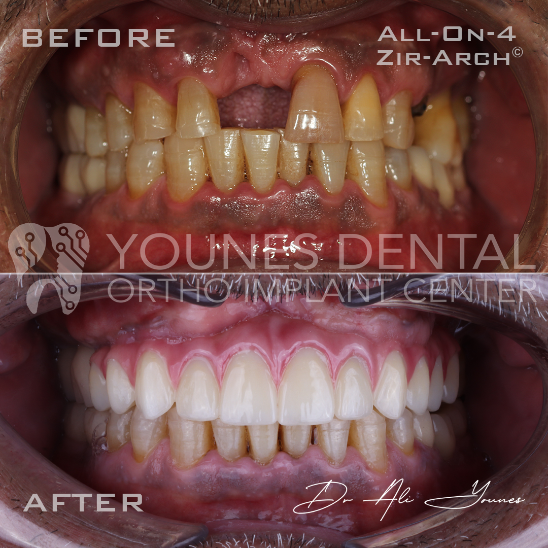 At Younes Dental Clinic, our All-on-4 procedure is designed to provide patients with a complete smile transformation in just one day. Using four strategically placed implants, we restore a full arch of natural-looking, fully functional teeth. Patients arrive with hope, and by the end of the day, they leave with a brand-new smile that radiates confidence. Our team takes pride in offering cutting-edge technology and exceptional care to ensure every smile is not only aesthetically beautiful but also strong and durable. This life-changing procedure allows our patients to enjoy a renewed sense of well-being and the ability to smile, eat, and speak with confidence.